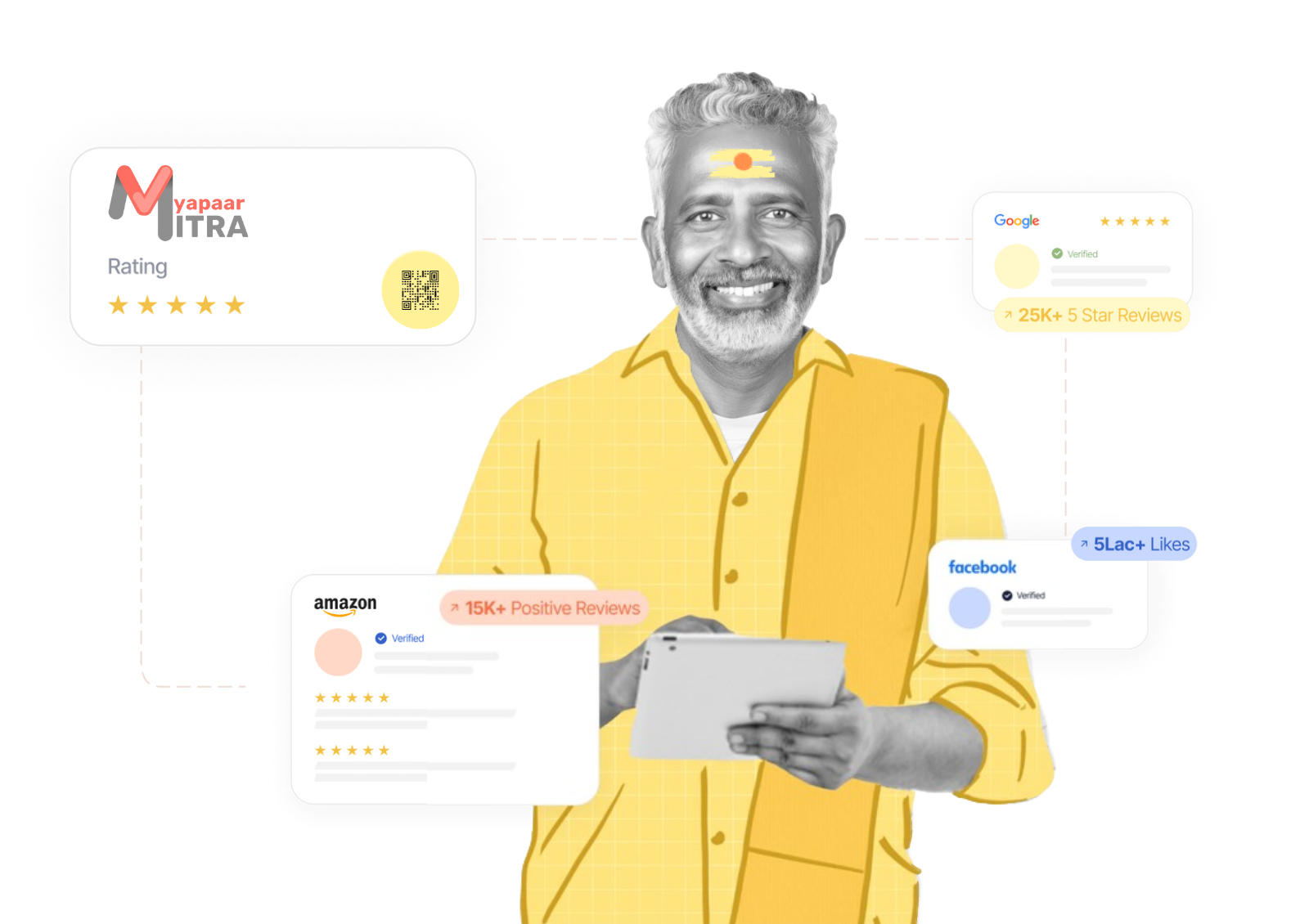 व्यापार मित्र, एक क्रांतिकारी प्लेटफार्म व्यापार मित्र लाया है एक क्रांतिकारी प्लेटफार्म जो बिना किसी तकनीकी विशेषज्ञता के करोड़ों भारतीय व्यापारियों को अपने व्यापार और फिज़िकल स्टोर को डिजिटल दुनिया में लाने में मदद कर रहा है।